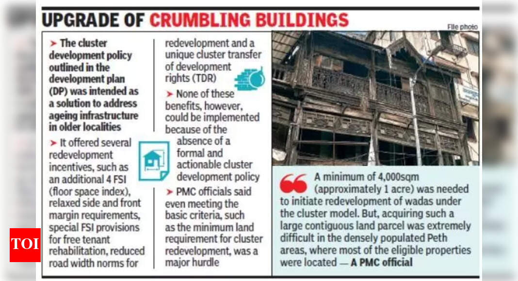 पुणे: सुमारे आठ वर्षांपूर्वी प्रस्तावित, शहरातील जुने वाडे आणि मोडकळीस आलेल्या इमारतींचा पुनर्विकास करण्याच्या उद्देशाने क्लस्टर डेव्हलपमेंट उपक्रमात अत्यल्प प्रगती झाल्याचे पुणे महापालिकेच्या (पीएमसी) आकडेवारीतून