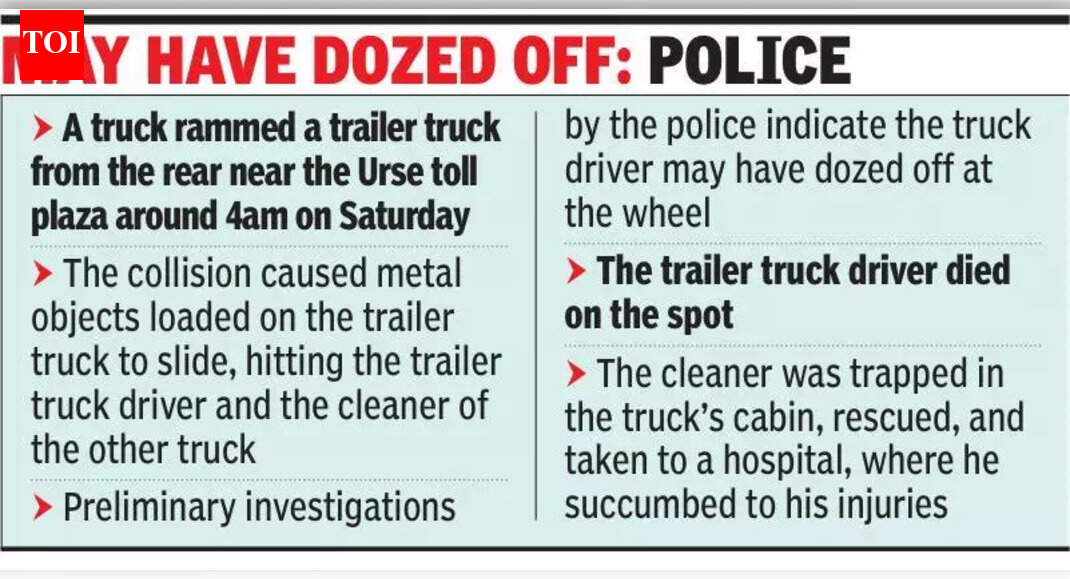 पुणे : पुणे-मुंबई द्रुतगती महामार्गावरील उर्से टोल प्लाझाजवळ शनिवारी पहाटे ४ वाजताच्या सुमारास दोन वेगवेगळ्या अवजड वाहनांमधून प्रवास करणाऱ्या चालक आणि क्लिनरचा ट्रेलर ट्रकच्या मागील