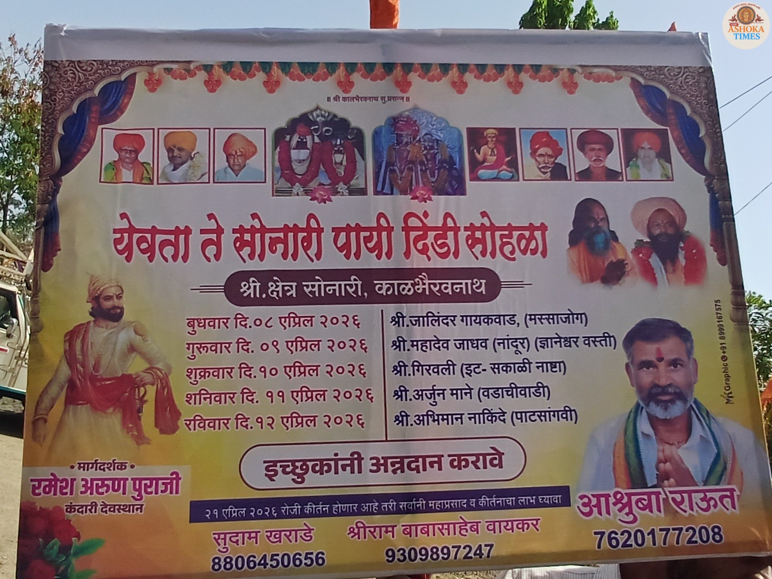 येवता ता.केज येथे श्री क्षेत्र सोनारीच्या काळभैरवनाथ महाराजांच्या आशीर्वादाने भव्य ‘सोनारी पायी दिंडी सोहळ्या’चे आयोजन करण्यात आले आहे. या धार्मिक सोहळ्याची सुरुवात ८ एप्रिल २०२६ रोजी होत असून, १२ एप्रिल २०२६ पर्यंत विविध धार्मिक कार्यक्रमांचे आयोजन करण्यात आले आहे.